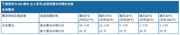 ?在涂裝施工和涂層固化過(guò)程中應(yīng)確保底材溫度高于攝氏 5°C (華氏41°F)。