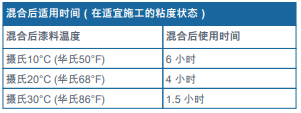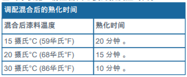 ?涂裝前最好應(yīng)將各組份或混合后的漆料溫度調(diào)控到攝氏15°C (華氏59°F)以上, 不然則可能需要添加稀釋劑,以便將漆料粘度調(diào)整到適合施工的粘稠狀態(tài)。