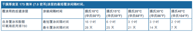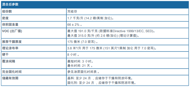 備注: 刷涂施工時(shí)的最大干膜厚度: 80 微米 (3.1 密耳) 。