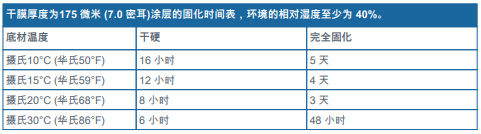 ?在涂裝施工和涂層固化過(guò)程中應(yīng)確保底材溫度高于攝氏 10°C (華氏50°F)。