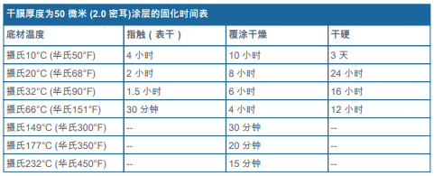 -敬請參閱補充參數(shù)表 - 涂層固化時間表。