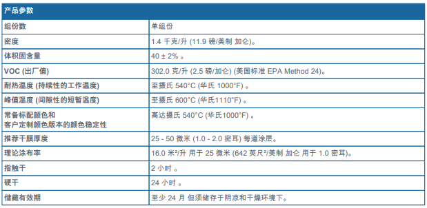 ?由特種有機硅酮樹脂研發(fā)而成的耐高溫面漆,可耐受最高溫度可至攝氏 540°C (華氏1000°F)的苛刻熱循環(huán)。